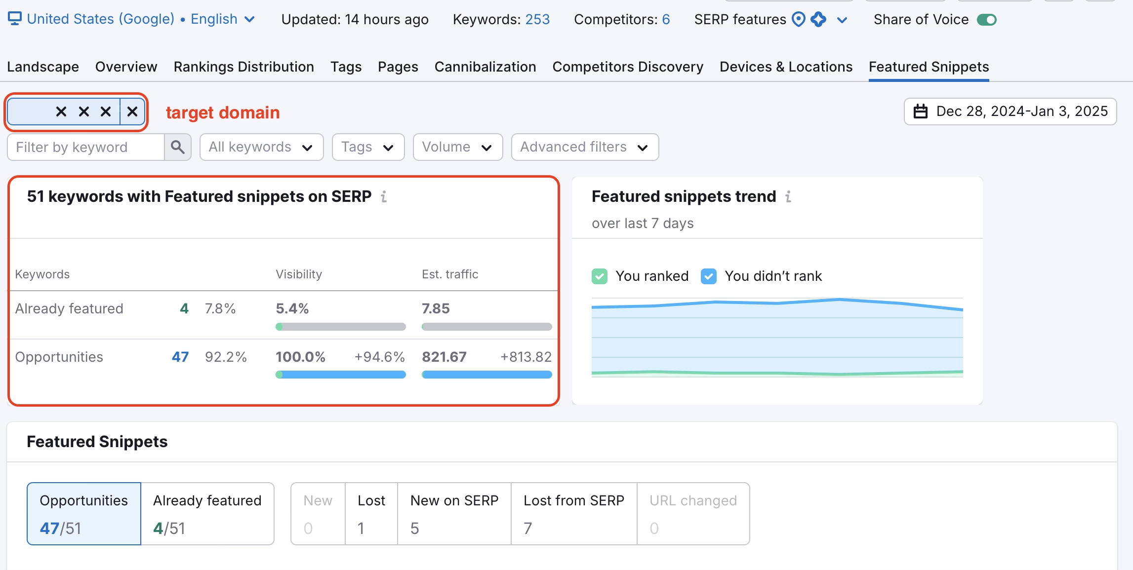 - Keywords that trigger featured snippets